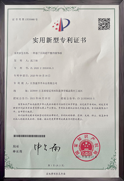 為了打造多元化市場,2014年,沈蘭知創(chuàng)建了江蘇藍(lán)羊羊裝飾材料有限公司,業(yè)務(wù)拓展至高檔防水建筑模板生產(chǎn),“藍(lán)羊羊集團(tuán)”初具雛形。征地一百多畝,建成廠房3萬平米,建設(shè)12條自動化生產(chǎn)線,日產(chǎn)模板2萬余張,專利技術(shù)超20項,品牌影響力日益增強。